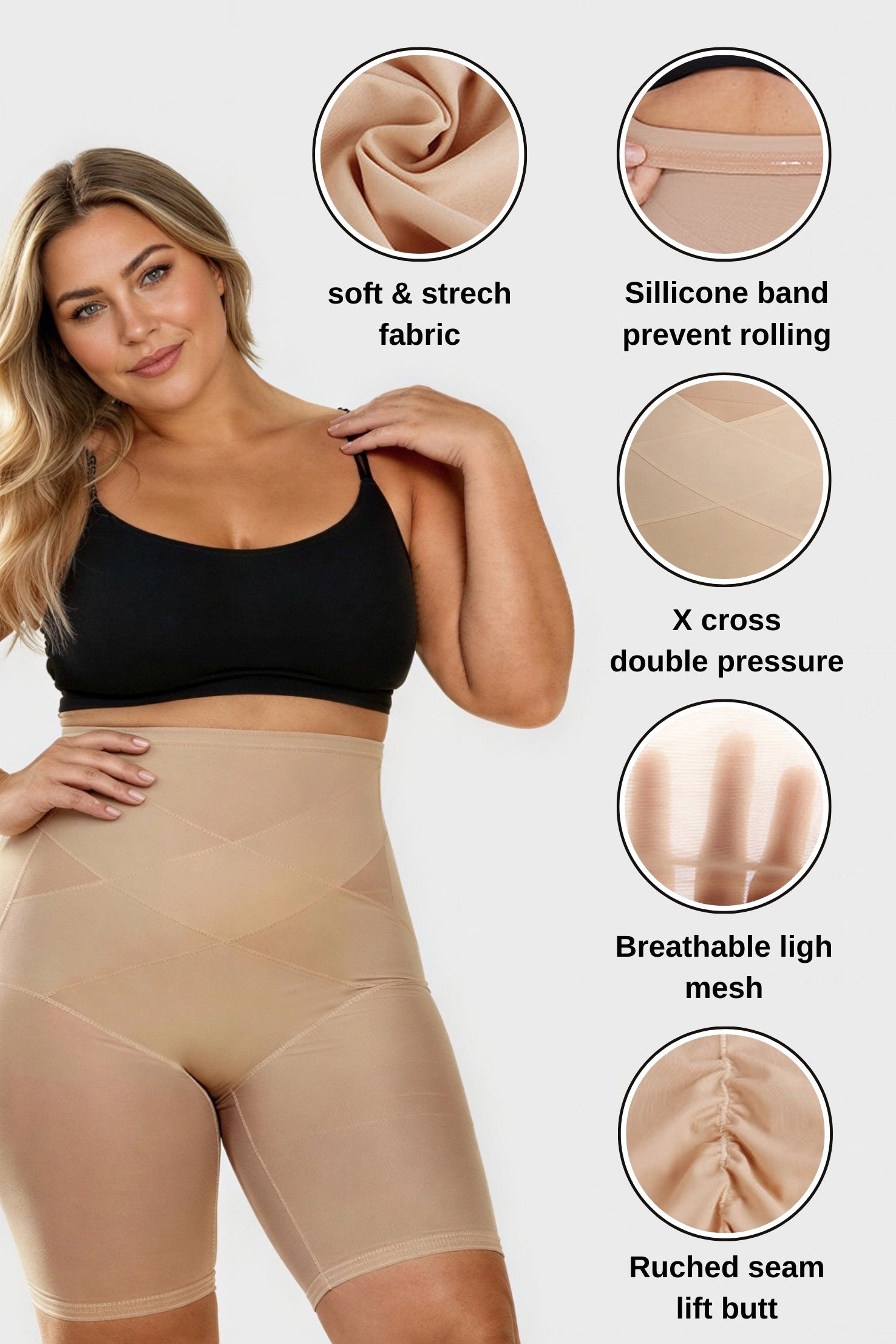 Crafted from breathable stretch fabric with a silicone anti roll waistband, this piece ensures secure, comfortable shaping under evening dresses, gowns and fitted silhouettes.